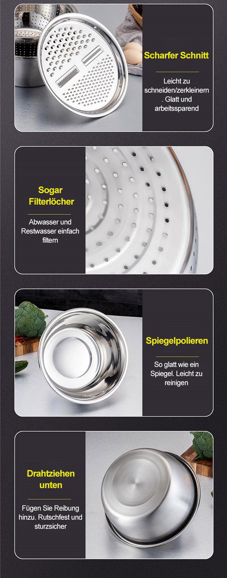 Reibenbecken, dreiteiliges Set
